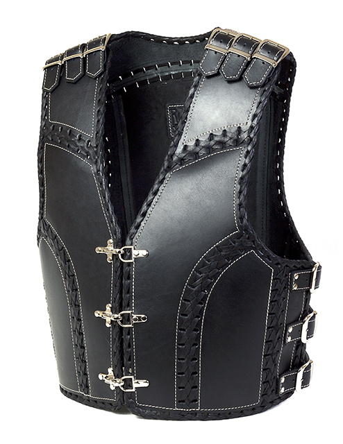 2)Жилет из натуральной прочной кожи 3-5 мм толщиной,новый ни разу не одетый,размер 60,цена 10000руб
