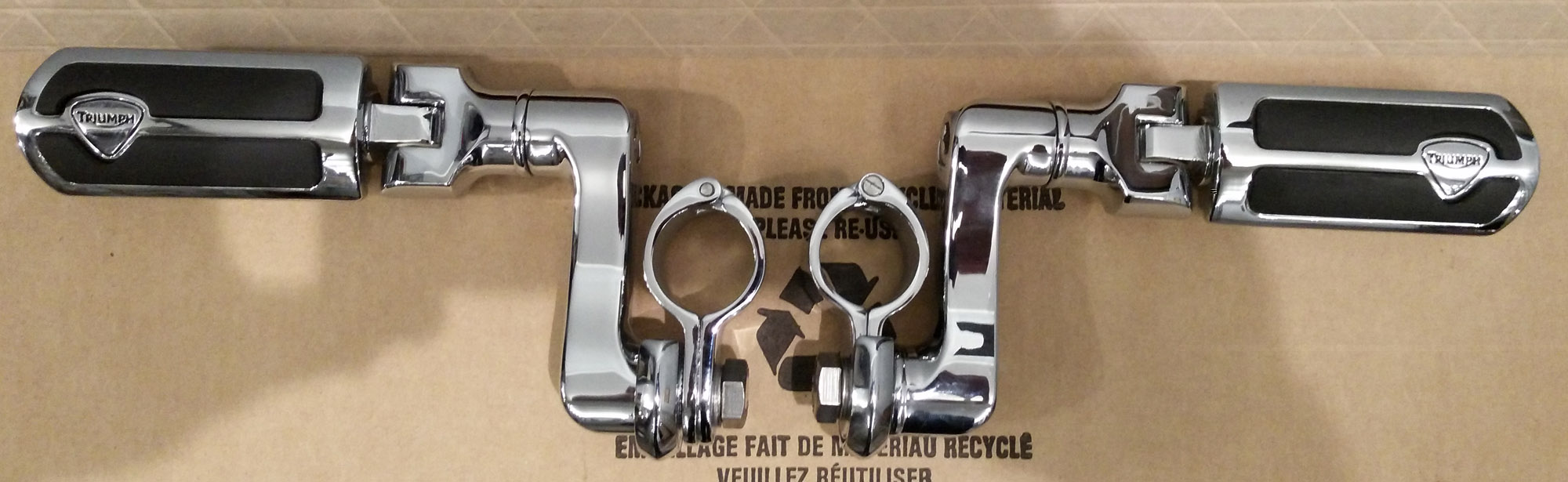 1. Регулируемые крепления подножек на дуги + подножки с лого Triumph