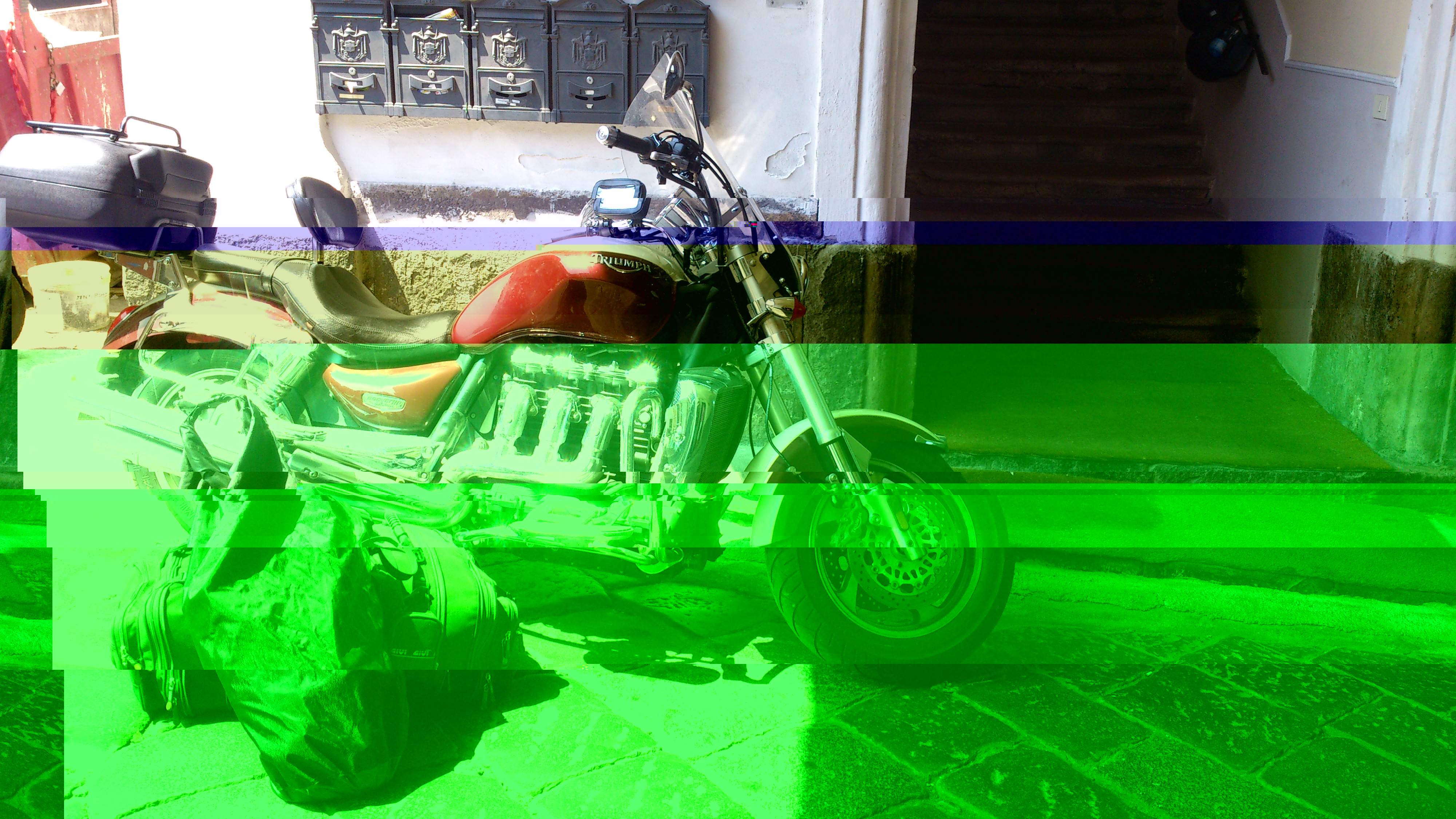 Пришлось срочно искать, где поменять, т.к. ехать на голом корде не рискнул :-): Был рядом со швейцарским Базелем и нашел там дилера Триумфа, где ее и поменяли...