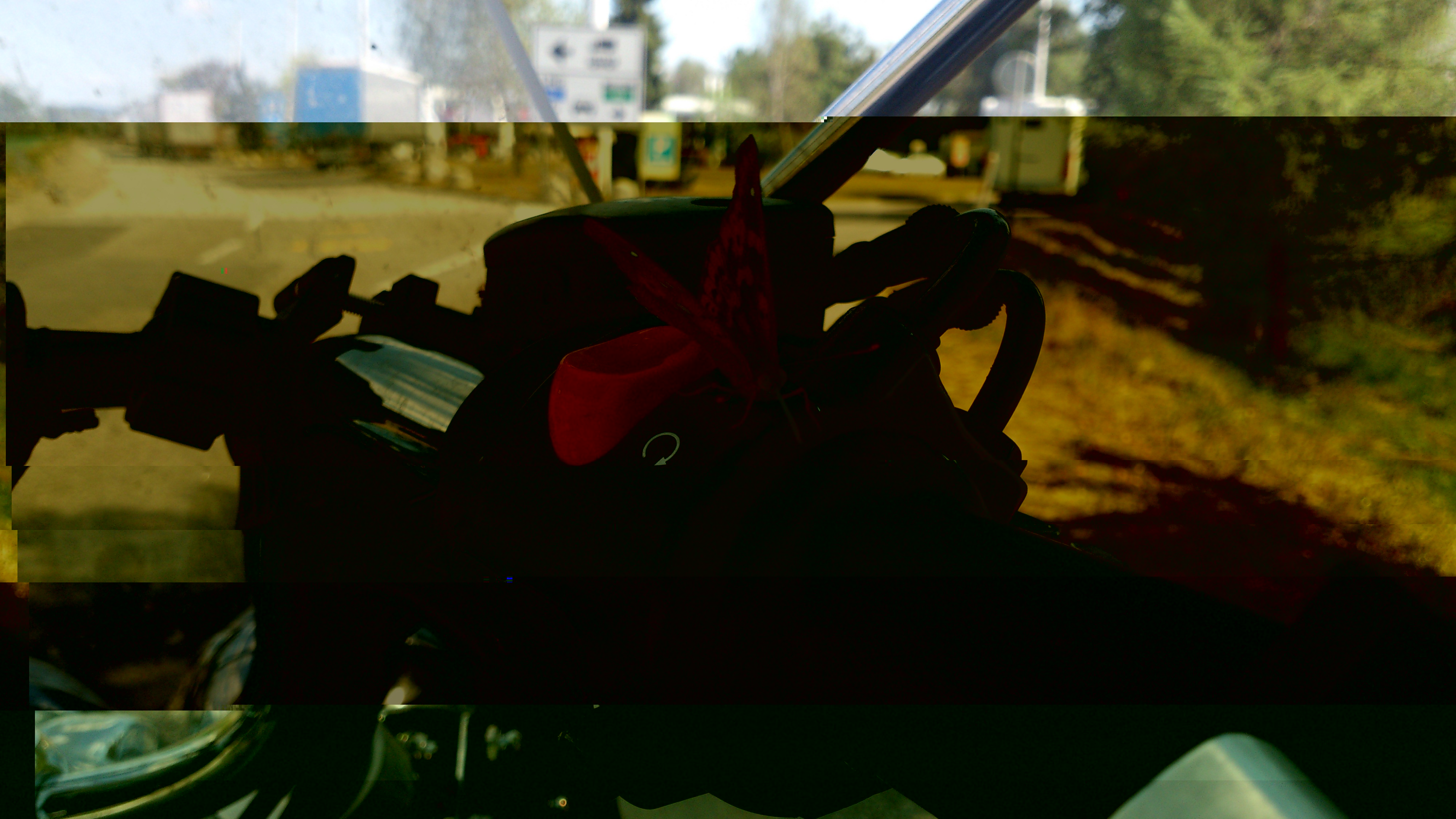 По дороге даже пришлось поменять резину... :-): Думал старой хватит, ан нет... после длительных промежутков в Белорусии и Германии со скоростью 190 на нагруженном мотике, с ней случилось вот такая штука...