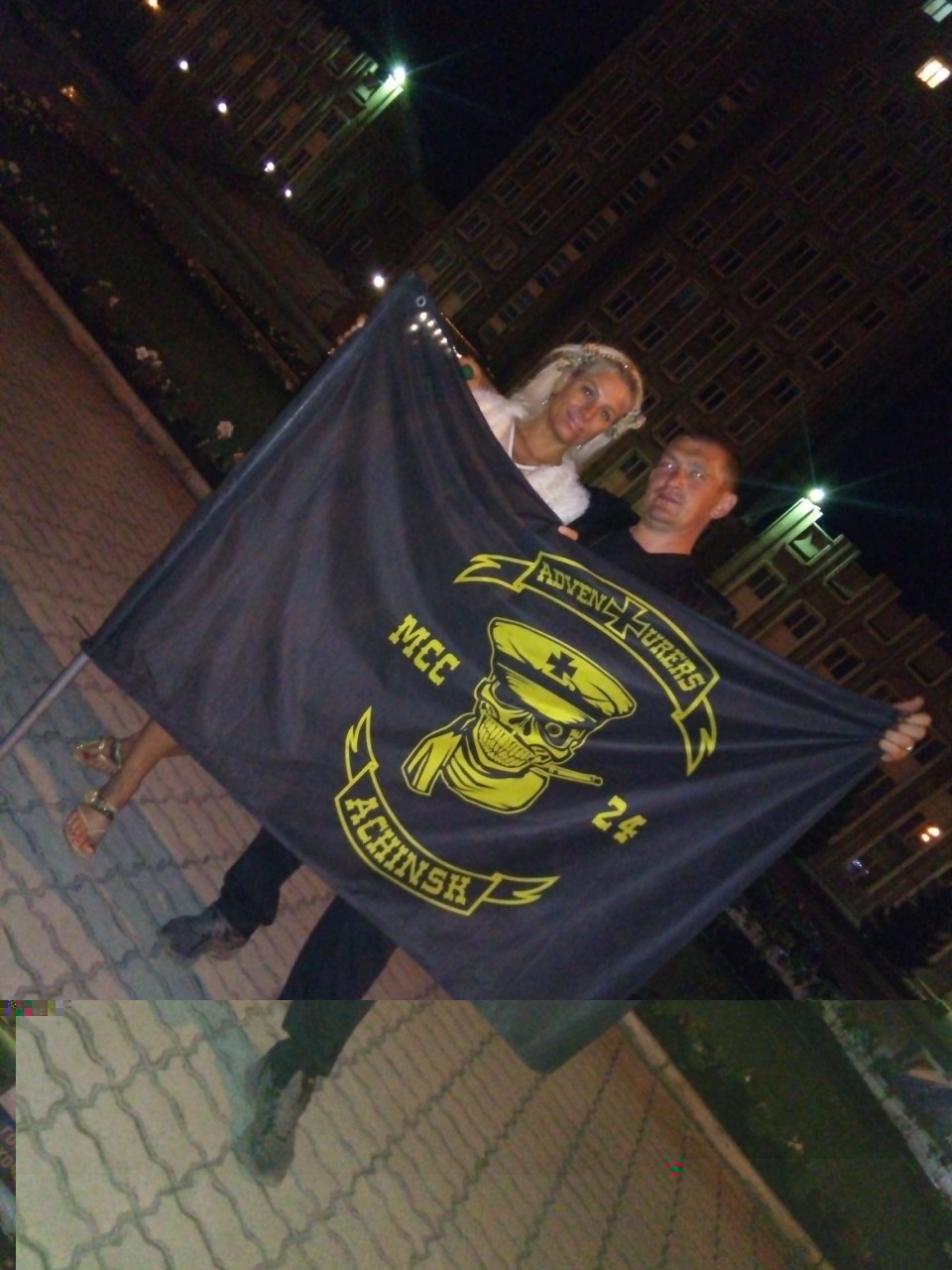 Под эти истории кончились запасы пива и других алкогольных напитков! "Поднакидались" мы с Олегом уже нормально но недостаточно для окончания вечера, и решил он мне экскурсию по городу устроить. Вызвонил дивчину на машине, зачем то взяли клубный флаг и поехали осматривать достопримечательности города Ачинск! Первым делом заехали в пивняк, чтоб не на сухую экскурсировать. В городе Ачинск столько же достопримечательностей сколько и в городе Климовск! Если "днём и не бухать" то за полчаса всё можно пересмотреть! Но была ночь и мы бухали, потому и времени на осмотр ушло гораздо больше! Зато было весело, нафоткались на фоне всего чего нашли интересного, и Люда (так звали нашу даму-шофёра) катала нас до двух часов ночи! Приехав на байкпост, упали на шконари и вырубились. Как я умудрился завести будильник не помню! Но завёл! Следующим днём планировал доехать до Усолья Сибирского на байкпост к Сане "Бонифацию", а это больше 1200 км.