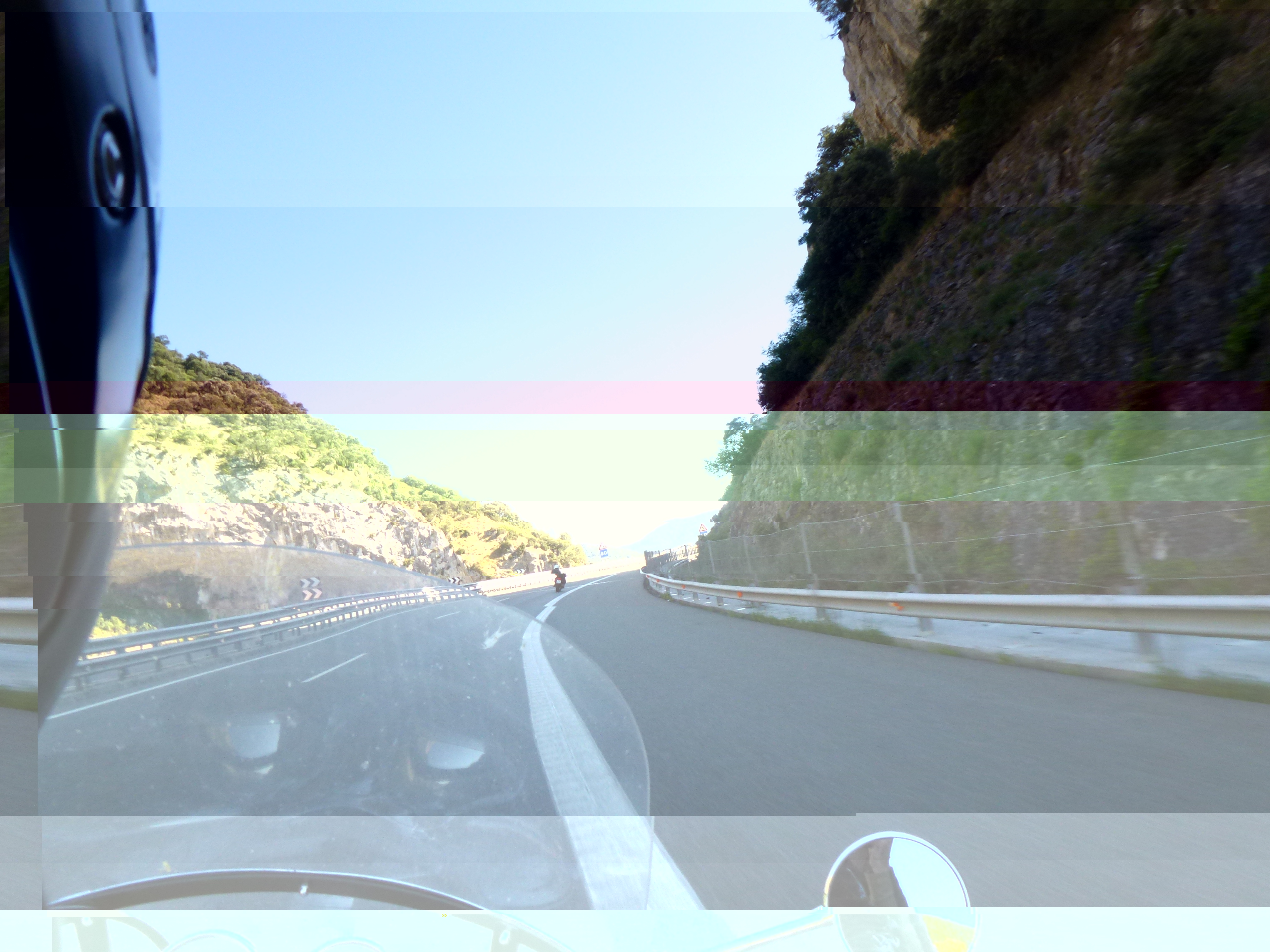 Рокет с честью провез весь этот путь, выдержав испытания и дождями и жуткой жарой в +42-45 в Португалии и горными дорогами, включая какую-то узкую полуразрушенную дорогу в Альпах с перевалом в 1200 метров и предупреждающими знаками с изображением мотоцикла и выпадающего из него пилота... Но не выпал... :-) медленно прополз все повороты, и вверх и вниз :-):