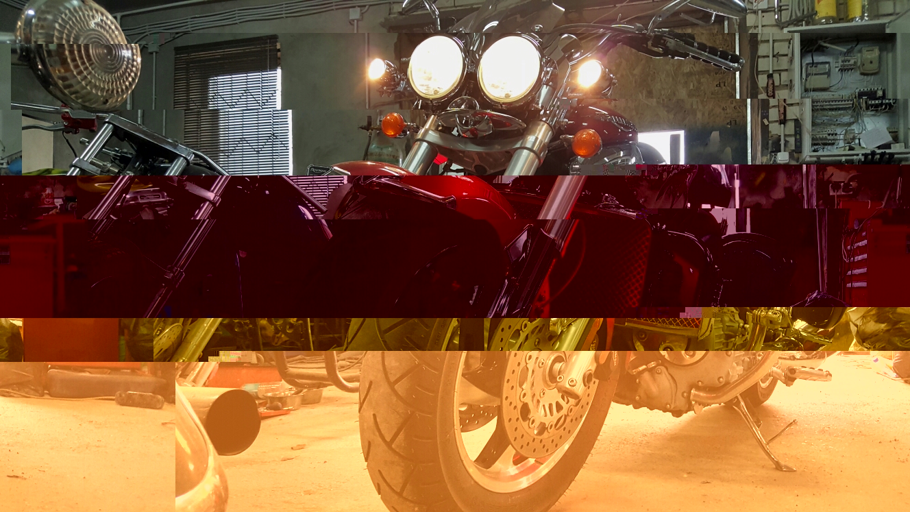 А на заднем плане остов мотоцикла как будто с дарксайдом на переднем колесе)