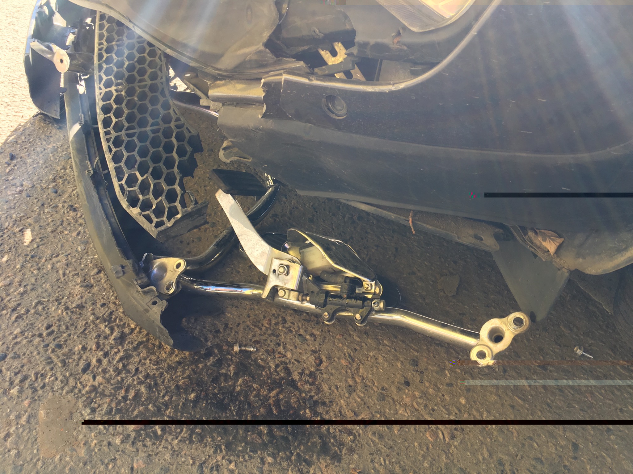 Удар пришелся прямо мне в правую ногу, сорвало рудную дугу с мотора вырвало с корнем подножку вместе с тормозным механизмом. По факту сломанное крепление на моторе и сорван натежитель цепи, обломало уши на моторе, буду наваривать.. Фото буду выкладывать чуть позже. Ищу запчасти и руки. Мне нужны обе подножки водителя и пассажира, дуги, радиатор и бак в первую очередь. Буду благодарен за любые советы