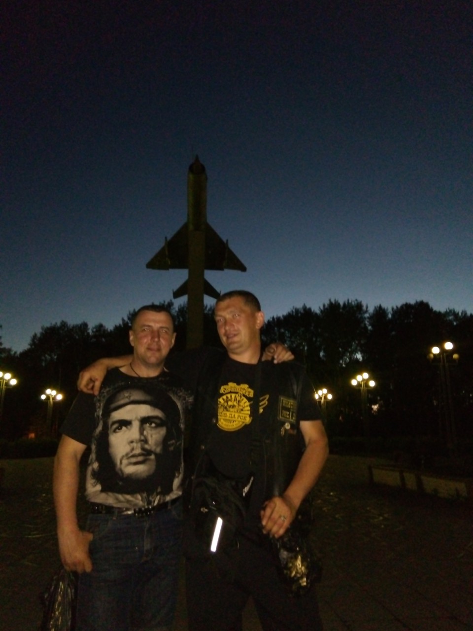 Под эти истории кончились запасы пива и других алкогольных напитков! "Поднакидались" мы с Олегом уже нормально но недостаточно для окончания вечера, и решил он мне экскурсию по городу устроить. Вызвонил дивчину на машине, зачем то взяли клубный флаг и поехали осматривать достопримечательности города Ачинск! Первым делом заехали в пивняк, чтоб не на сухую экскурсировать. В городе Ачинск столько же достопримечательностей сколько и в городе Климовск! Если "днём и не бухать" то за полчаса всё можно пересмотреть! Но была ночь и мы бухали, потому и времени на осмотр ушло гораздо больше! Зато было весело, нафоткались на фоне всего чего нашли интересного, и Люда (так звали нашу даму-шофёра) катала нас до двух часов ночи! Приехав на байкпост, упали на шконари и вырубились. Как я умудрился завести будильник не помню! Но завёл! Следующим днём планировал доехать до Усолья Сибирского на байкпост к Сане "Бонифацию", а это больше 1200 км.