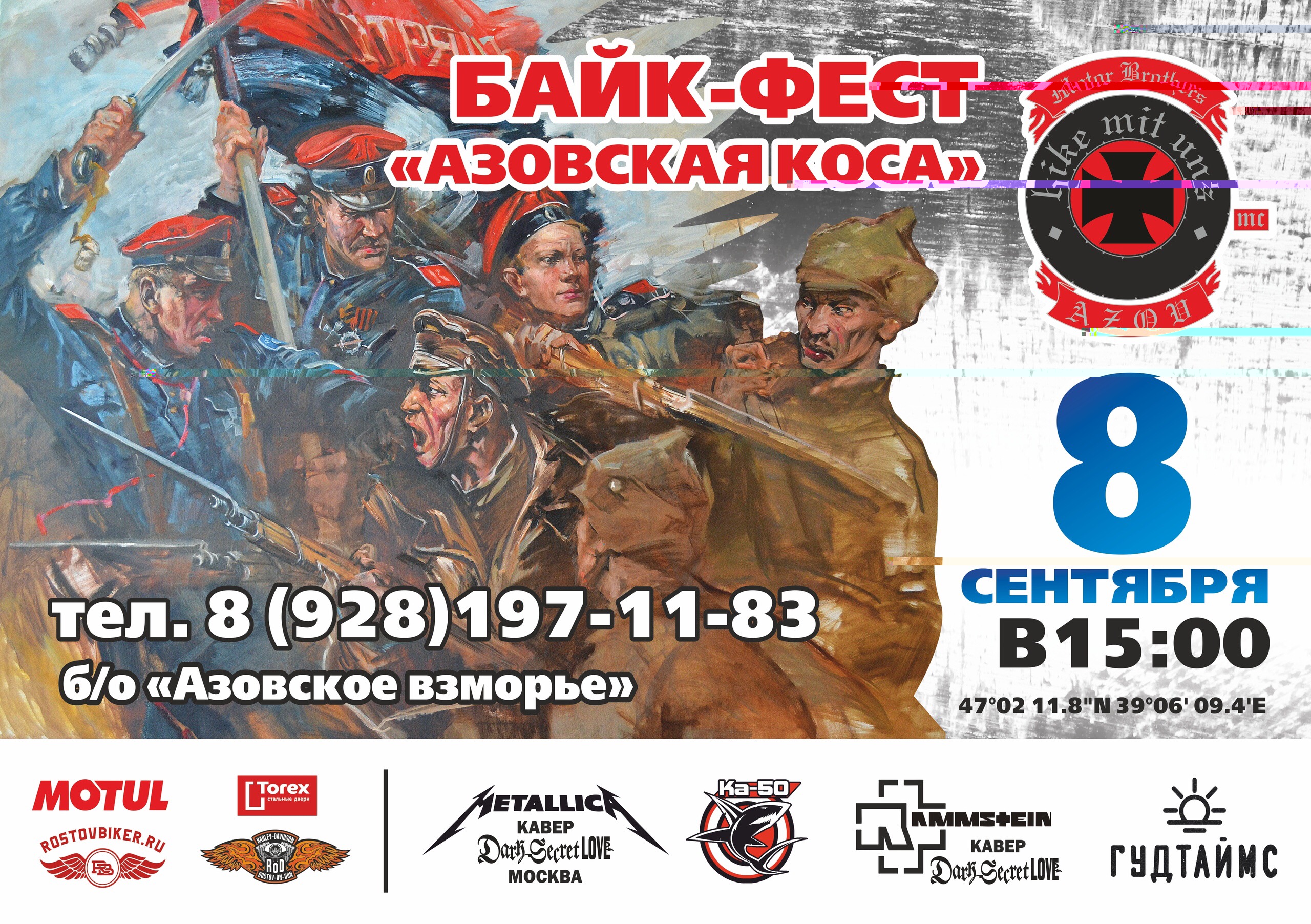 Место проведения Азовский район, Павло-Очаковская коса, база отдыха "Азовское взморье"(47.036437, 39.102158). Вас ожидают мотоконкурсы, много хорошей музыки, а так же захватывающая реконструкция на тему Гражданской войны! И естественно куча мотовеселья и драйва!