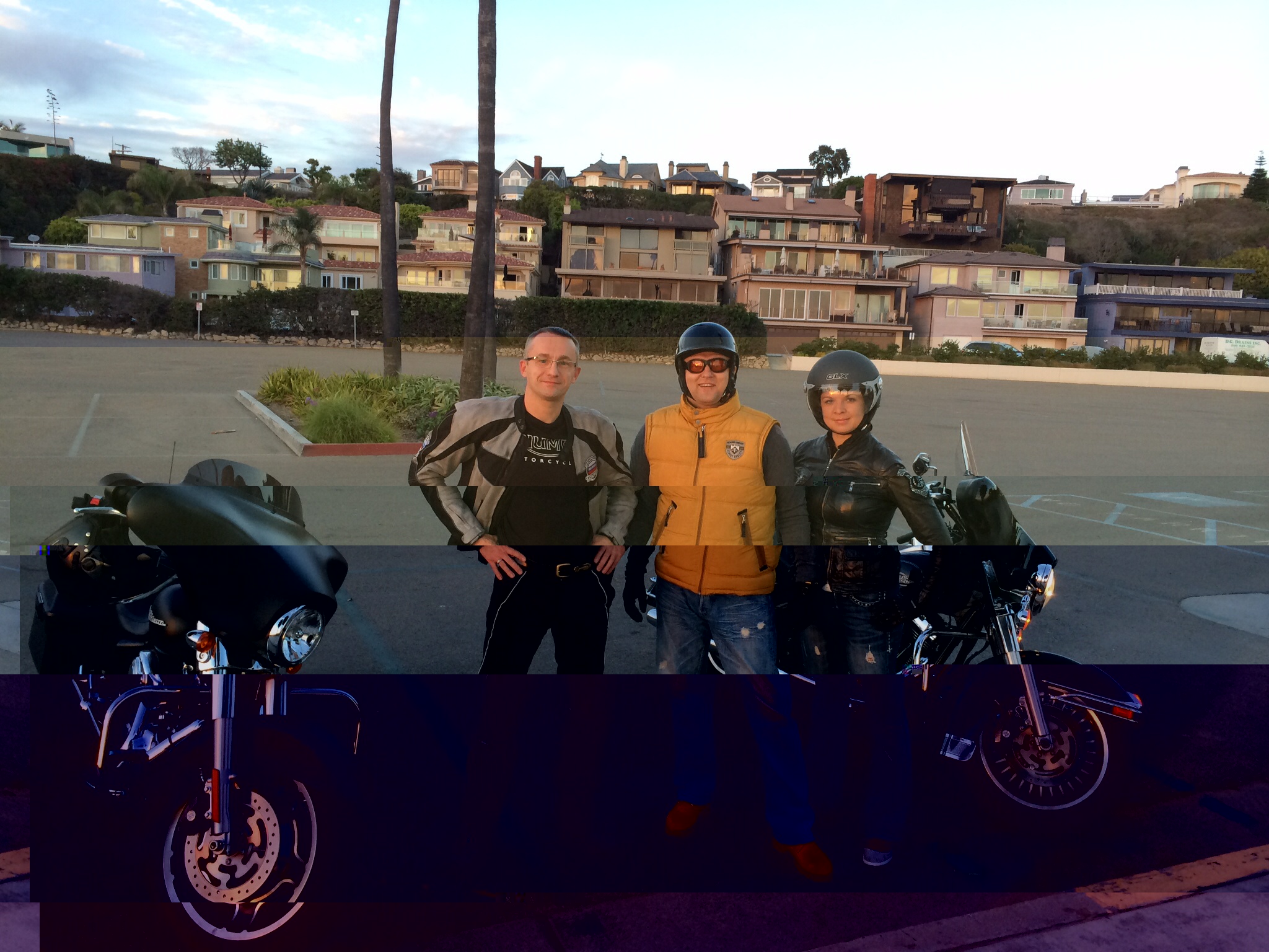 Плюс дороги, как оказалось, в хваленой Америке не везде такие уж хорошие. Они конечно ровные, но вот не везде из асфальта. На хай-веях, видимо для прочности, лежит белый такой, ребристый бетон, очень скользкий как выяснилось. Так еще и полосы разделены не только разметкой, но еще и металлическими бабышками через каждый метр, что очень затрудняет движение в междурядье. Так еще нога проткнута правая, которой на задний тормоз жать надо.