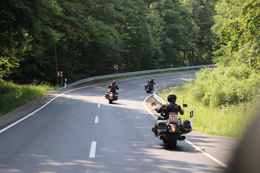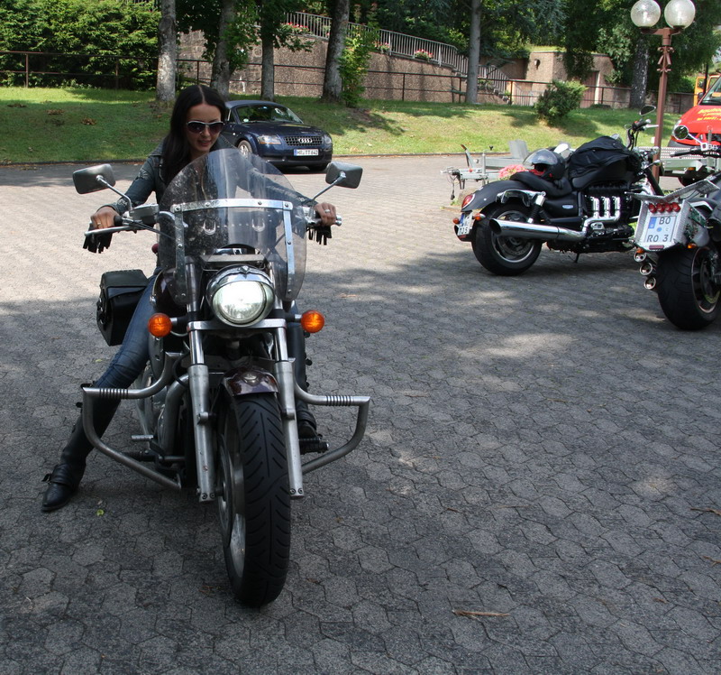 В Нюрнберге у нас была небольшая совместная авария - ночью после 860км пути жена прозевала светофор и снесла мне дугой кофр с рамкой, после чего пришлось 400км ехать с подвязанным ремнями кофром. Купить рамки у дилеров Триумфа оказалось невозможным, только под заказ из Англии. Но на удачу сложилось, так что наш путь лежал через Бад-Брюккенау, где проходила встреча местных рокетоводов.